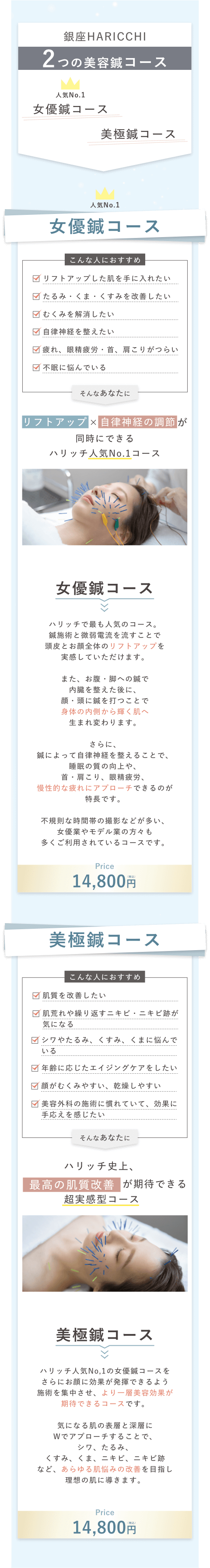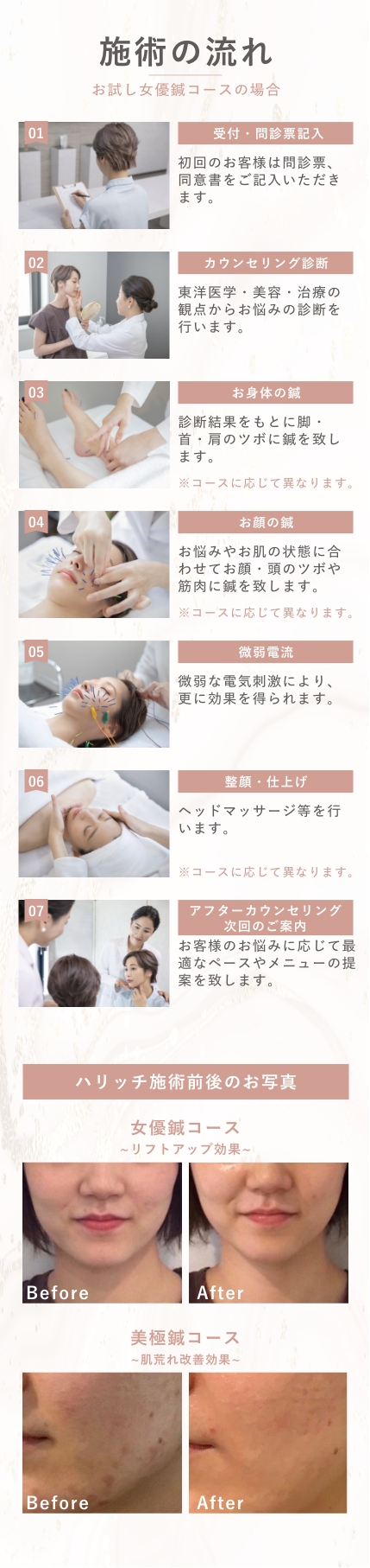 初めてご来院される方は「お試し女優鍼コース」をご選択ください